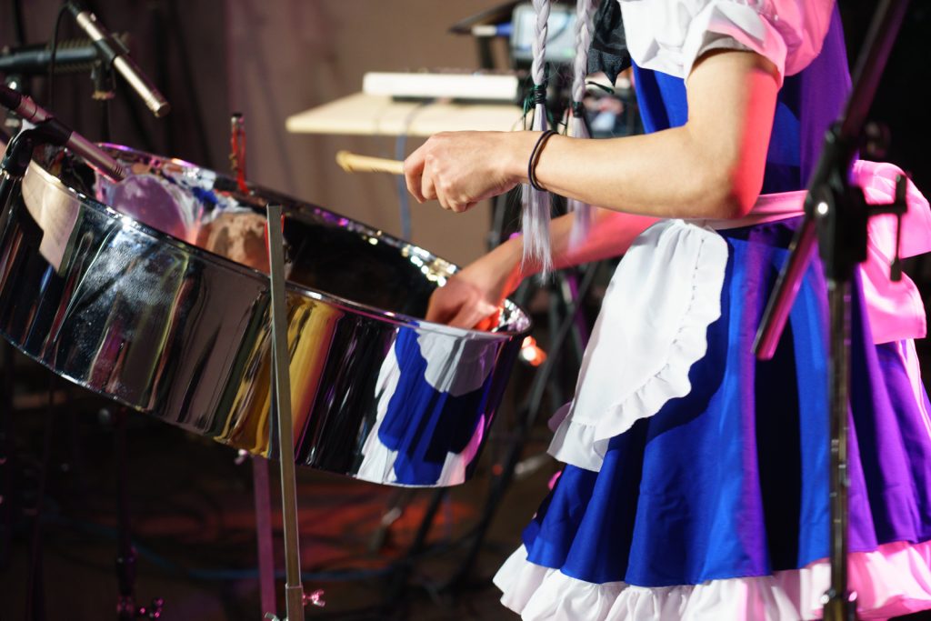 開場時からステージ中央に据えられた謎の楽器「スチールパン」。