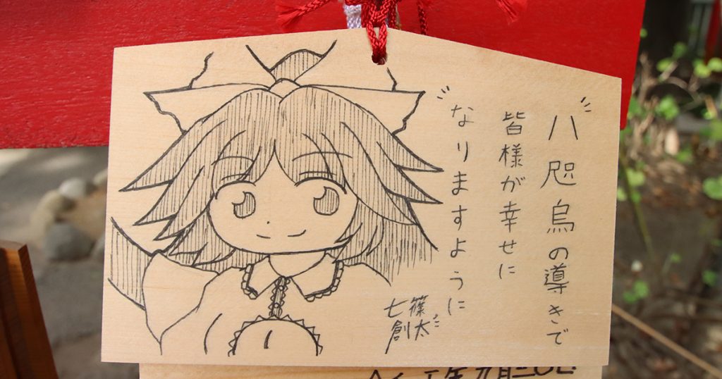 【※】上記写真で紹介している絵馬に描かれた東方イラストは、イベントで同人誌などを頒布しているサークル名「ナナシノ十字星団」の七篠創太氏による作品となります。