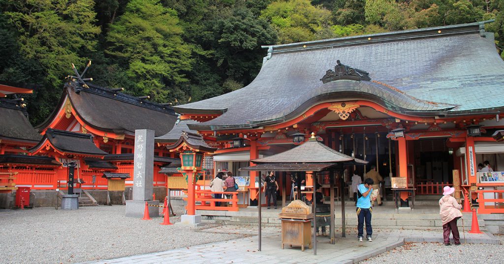皇室の初代である神武天皇(当時は即位前)を導いた八咫烏は、案内を終えた後に那智山で烏石に姿を変えて休んでいると伝わり、その烏石は熊野那智大社の御本殿に囲まれた位置に現存しています。また、境内にある御縣彦社では八咫烏が単独で祀られており、正面には三本足の姿をした八咫烏の銅像が参拝者を迎えてくれます。