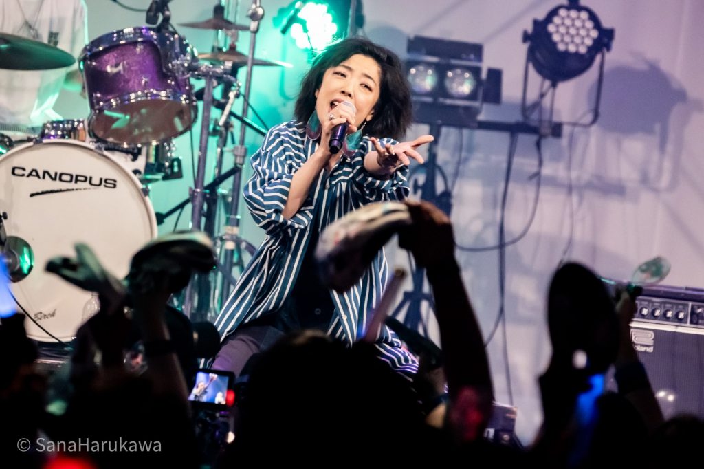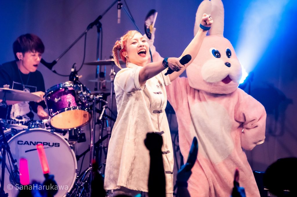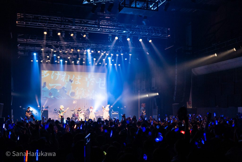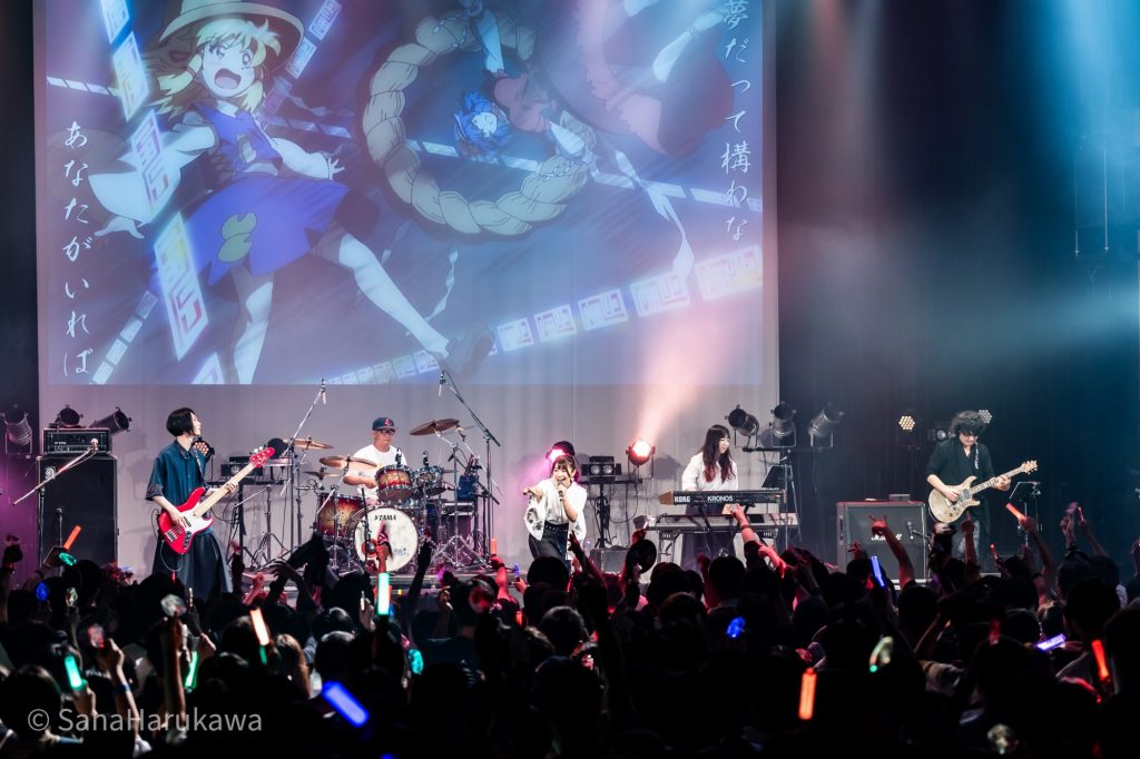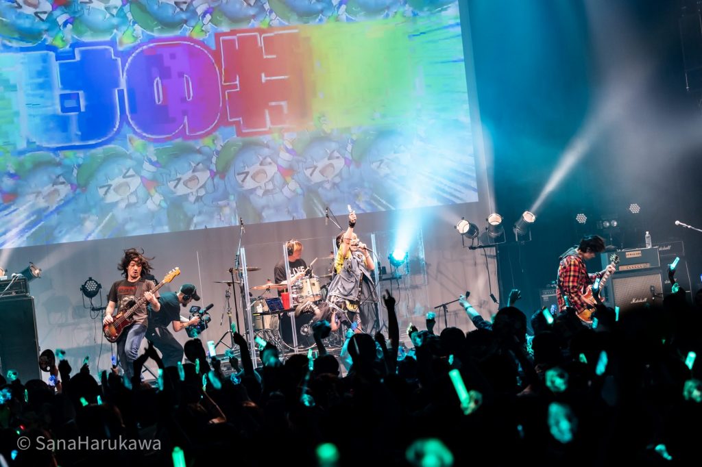 その後も「巡るHarvest」、『東方LostWord』書き下ろし楽曲「Ms.Spark」と、石鹸屋らしい熱いロックを連打しフロアを休ませません。