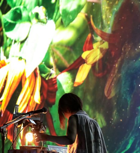 今回の演出では、あらかじめ作ったCGなどの映像ではなくて、すべてリアルタイムで生み出される映像を使います。Alive Paintingと呼ばれる手法で、さまざまな素材と水を組み合わせた映像表現となります。