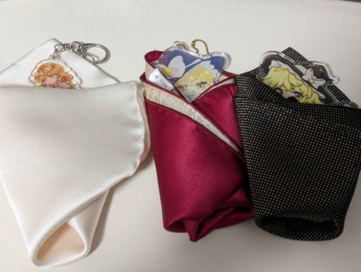 アクキーが複数ある場合は、少しで面倒でもそれぞれ別に包むことをオススメします。アクキー同士が擦れ合うと、それだけで傷がつきやすくなってしまうからです。
