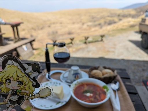 散歩をすれば、当然お腹が空きます。では、お腹が空いたらどうしましょう? そうです、食事です。もちろん、1人ではありません。アクキーの彼女と一緒です。