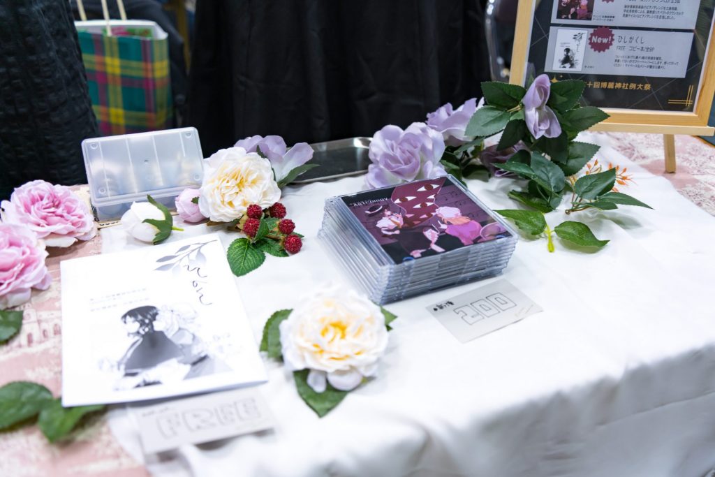 絵はのあり(@Noaririri_555)さん、アレンジは左側 麻那実(@mana5525)さんがそれぞれ担当されているサークル。漫画本のほうは開場わずか30分で完売という快挙に、秘封倶楽部の根強い人気を感じさせてくれました。