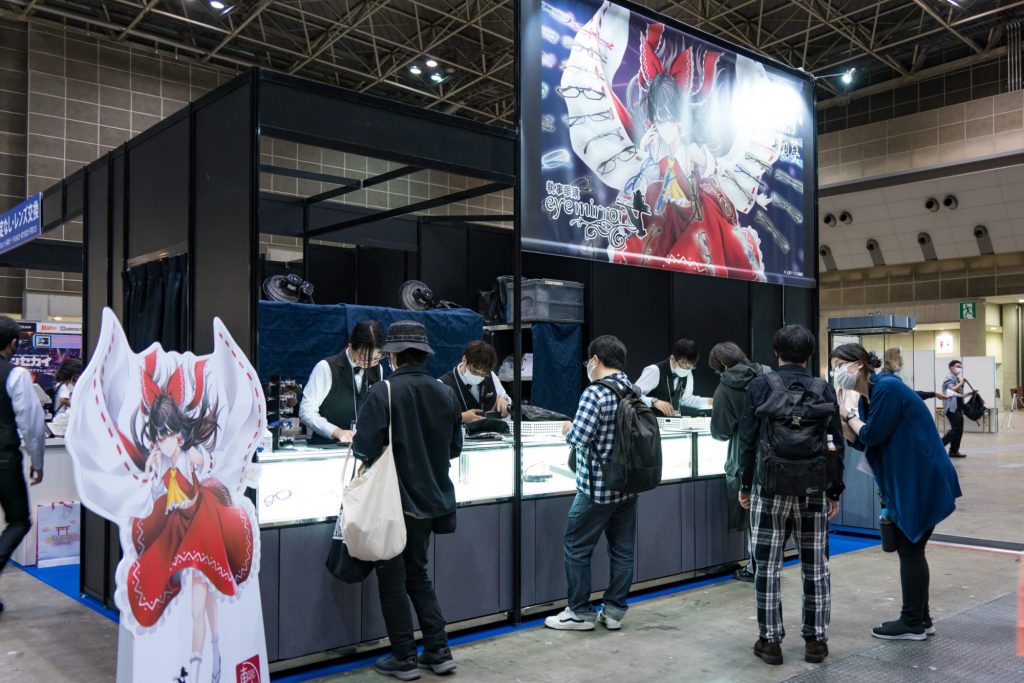 キャラクターの持つイメージをしっかりとデザインに練り込みつつも、メガネ本来のクオリティには妥協を許さない「東方MEGANE」シリーズを作り続けている「執事眼鏡eyemirror」さん。取材撮影の間も、ひっきりなしにお客さんが訪れ、続々と試着コーナーに入っていくのを目にしました。