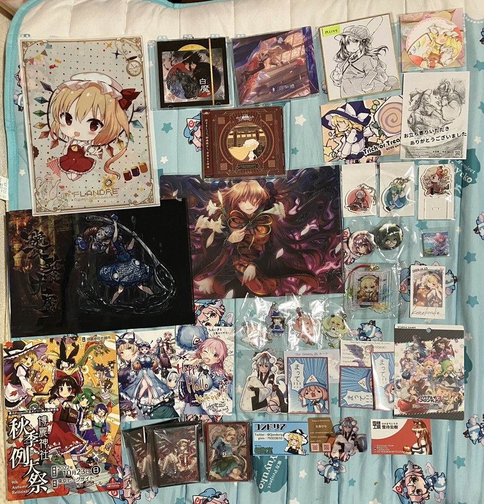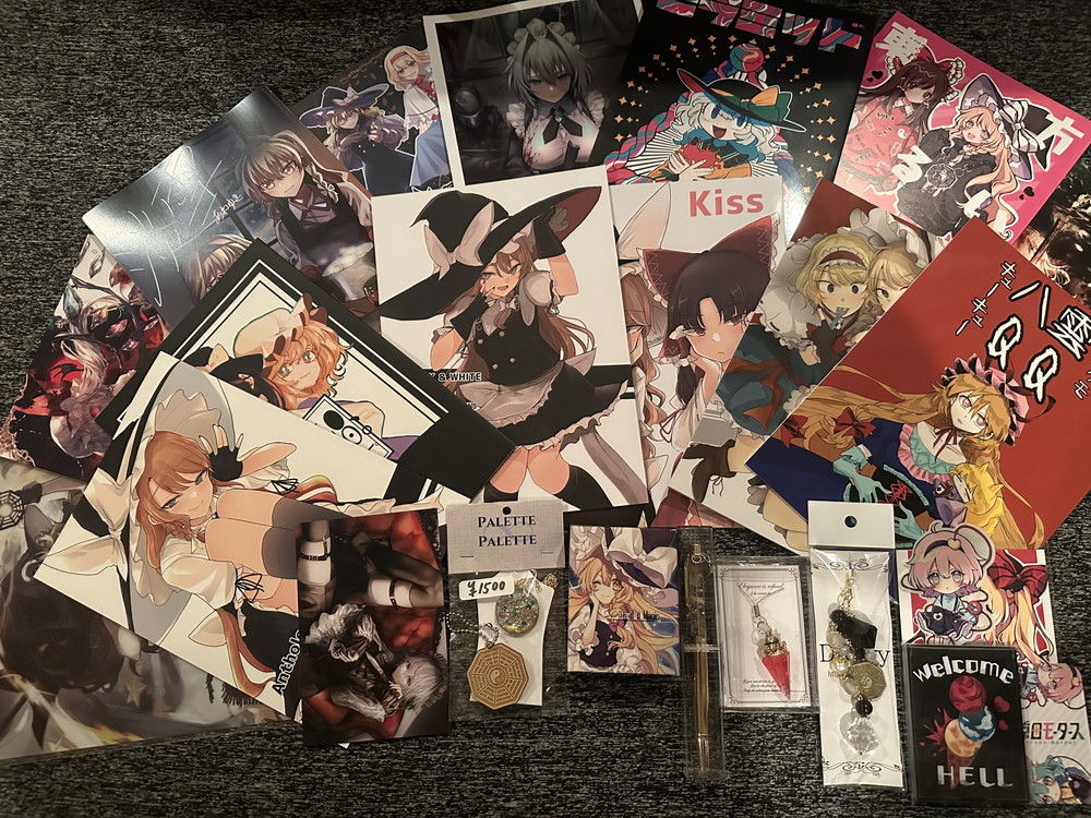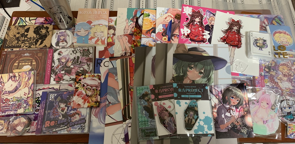欲しかったサインや色紙、グッズ、同人誌を買えてとても満足のいく例大祭でした! 次はもう少し資金を持って色々なサークルをまわって、より東方の面白さを知れたらと思います!!!!