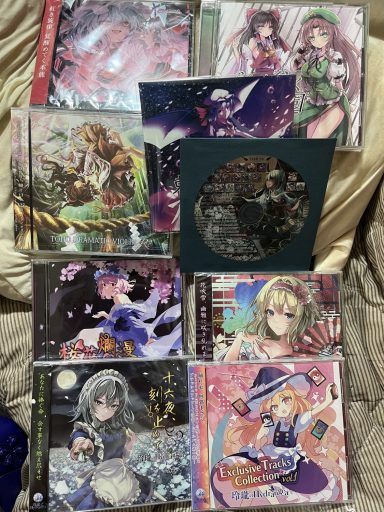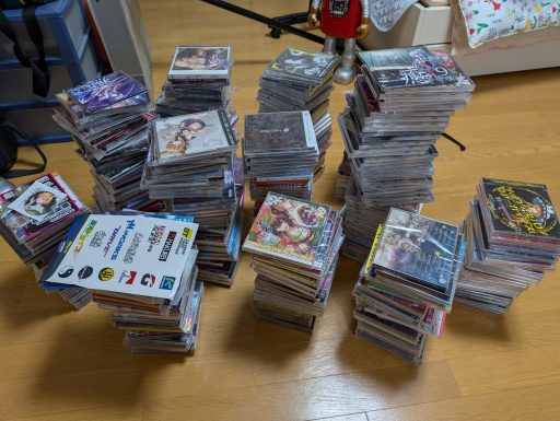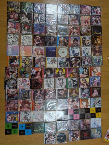 1枚目が静岡例大祭で入手した戦利品、2枚目が第22回博麗神社例大祭で入手した戦利品になります。基本的に知り合いの音楽サークルさんのCDを再度入手している形となります。多分枚数は軽く300枚以上、総額50万円以上はいってると思います。多分一イベントで購入した枚数だったら結構な量かなと思います。