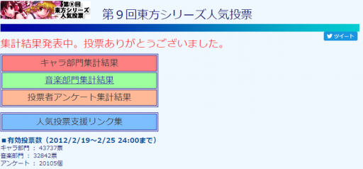 何卒よろしくお願いいたします。https://t.co/4VYY6l1c2Z— 東方Project人気投票 (@toho_vote) February 15, 2020