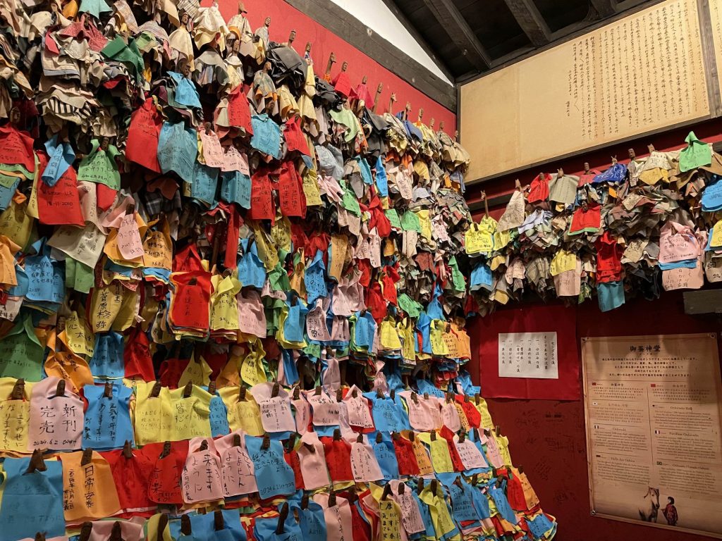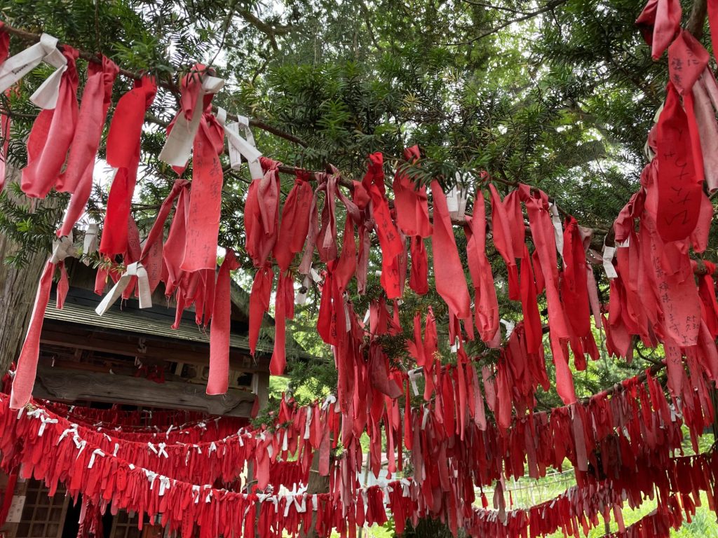 赤い布は利き手ではない手で願い事を書き、利き手ではない片手のみで結ぶと願いが叶うそうです。まあまあ難易度高いですね。