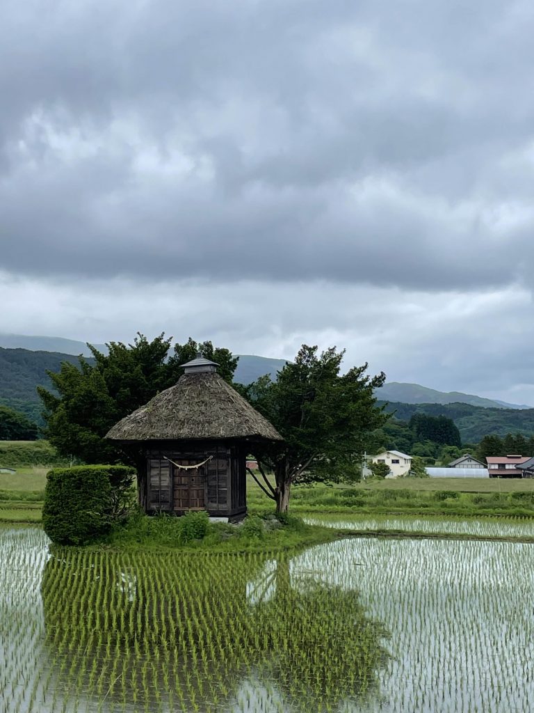 釜石線沿いの道を進んだ先、田畑の中に鎮座するのが荒神神社です。