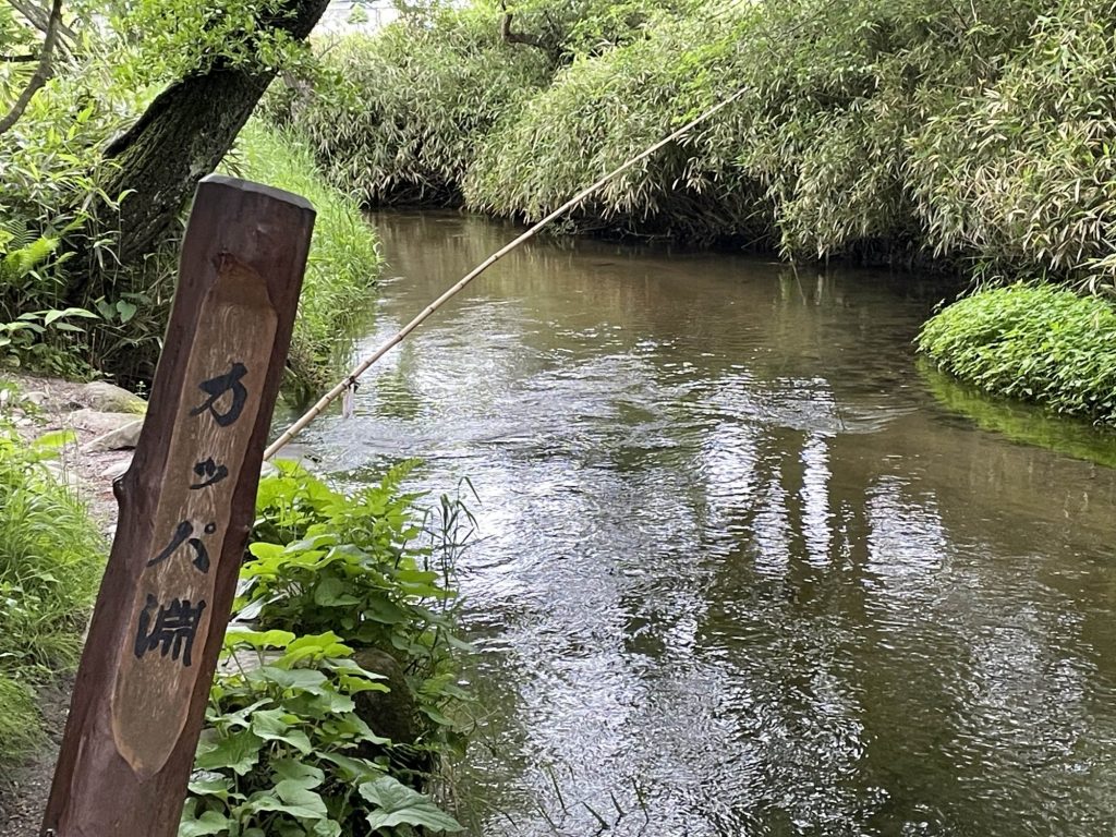 荒神神社から北上し、続いてはカッパ淵へ。隣接する伝承園も見て回りました。