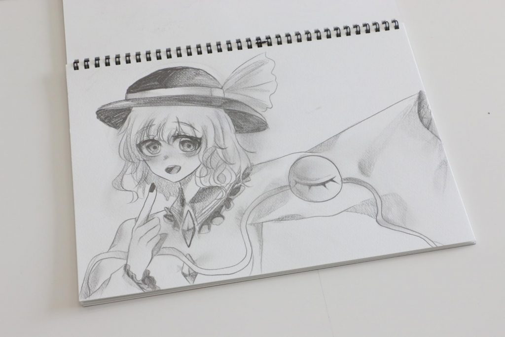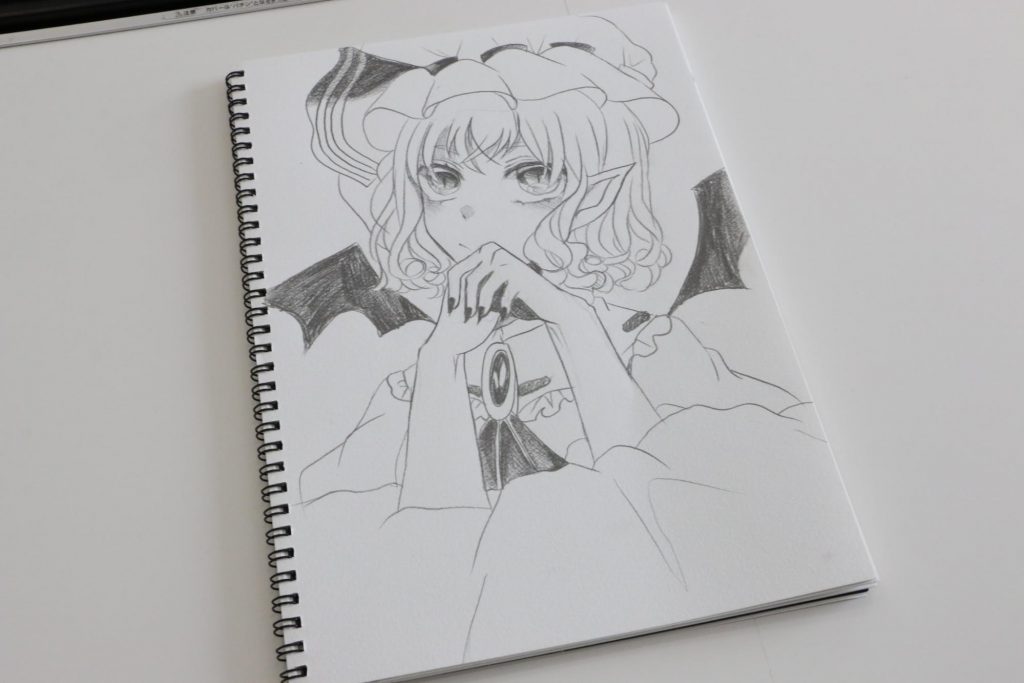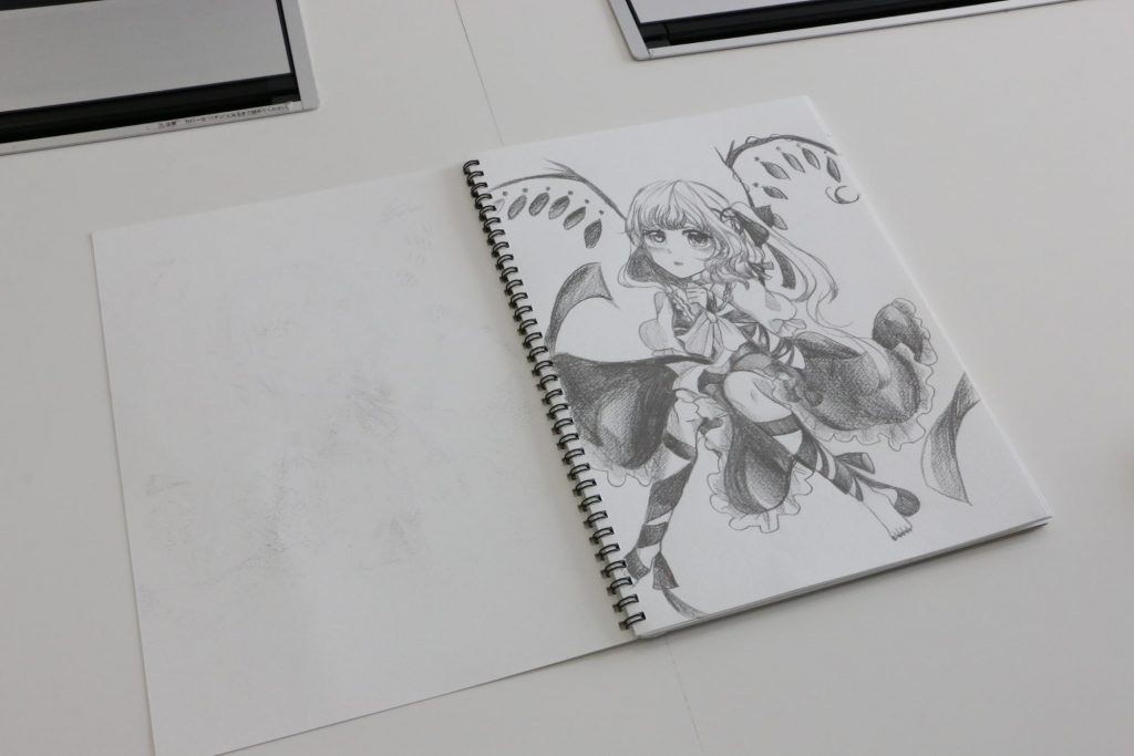 はい。でもわたし、アナログしか描けない。デジタルは全然慣れてなくて。イラストにはずっと興味があって描いてました。でも、東方のグッズとか本とかはなかなか買ってもらえなくて、この画集はやっと小学4年生の時に買ってもらったんです!