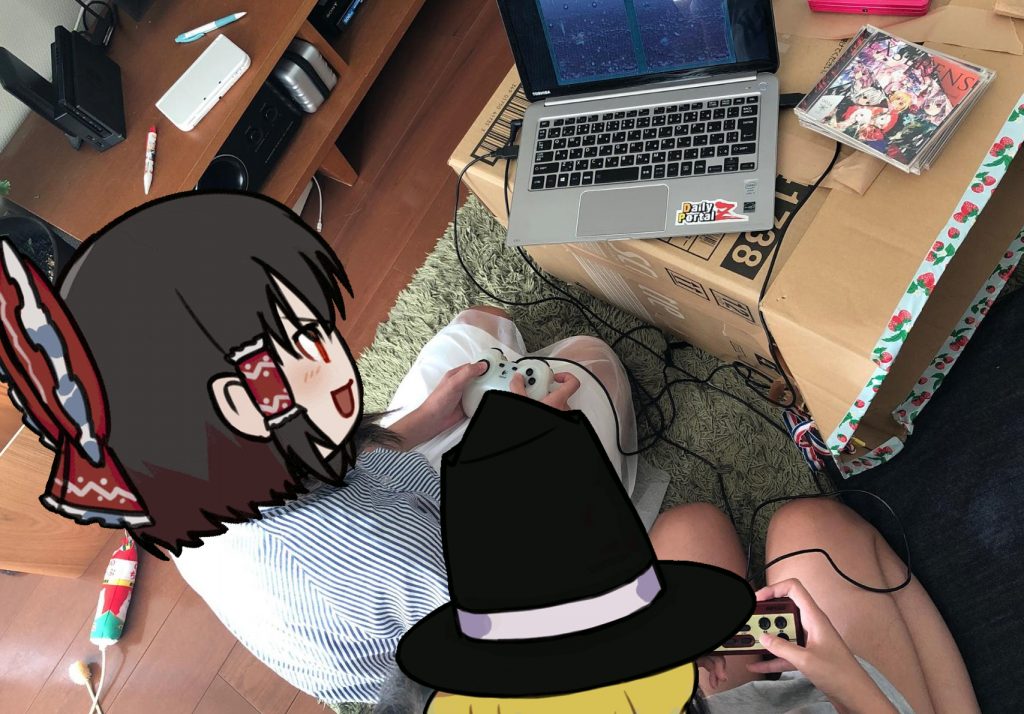 東方の原作はやってみたかったけど、手に入れ方がわからなかったふたり。後日、『妖々夢』と『花映塚』を持っていき、ななこちゃんとみりこちゃんにやり方を教えると、ふたりとも楽しんでプレイしてくれました!