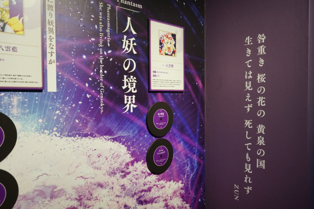 鳥居の先には、妖々夢の美麗な風景が壁一面に描かれており、壁沿いには妖々夢の各キャラクター解説などが展開されています。