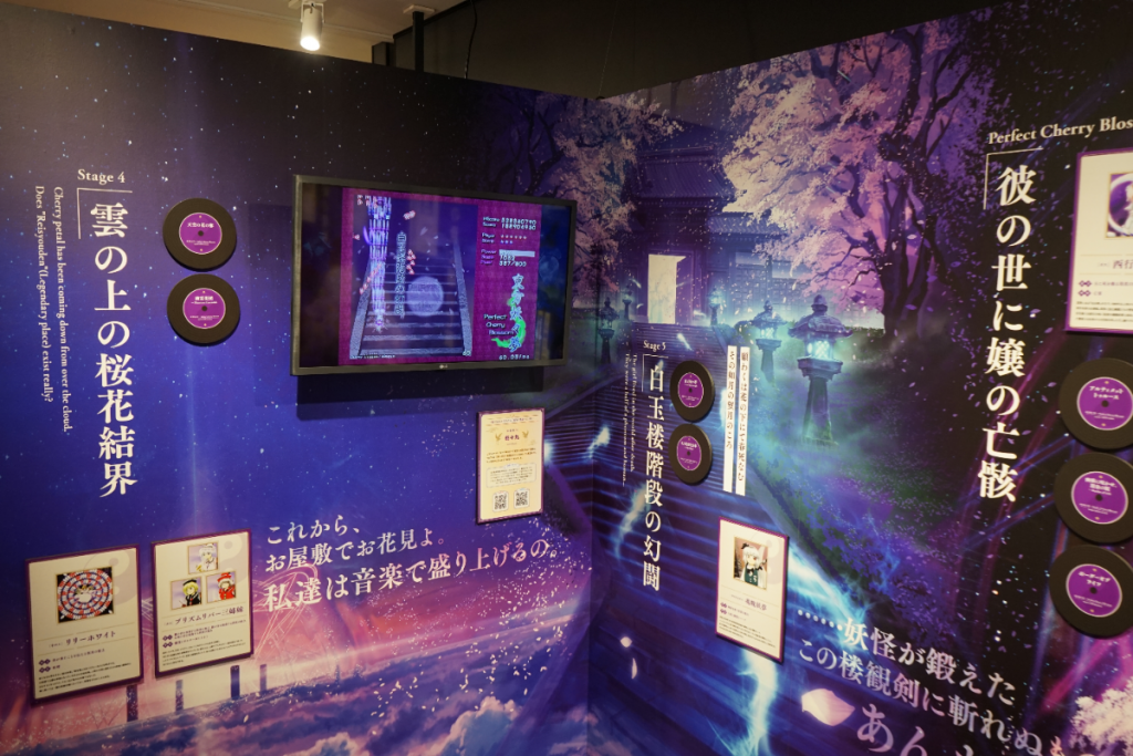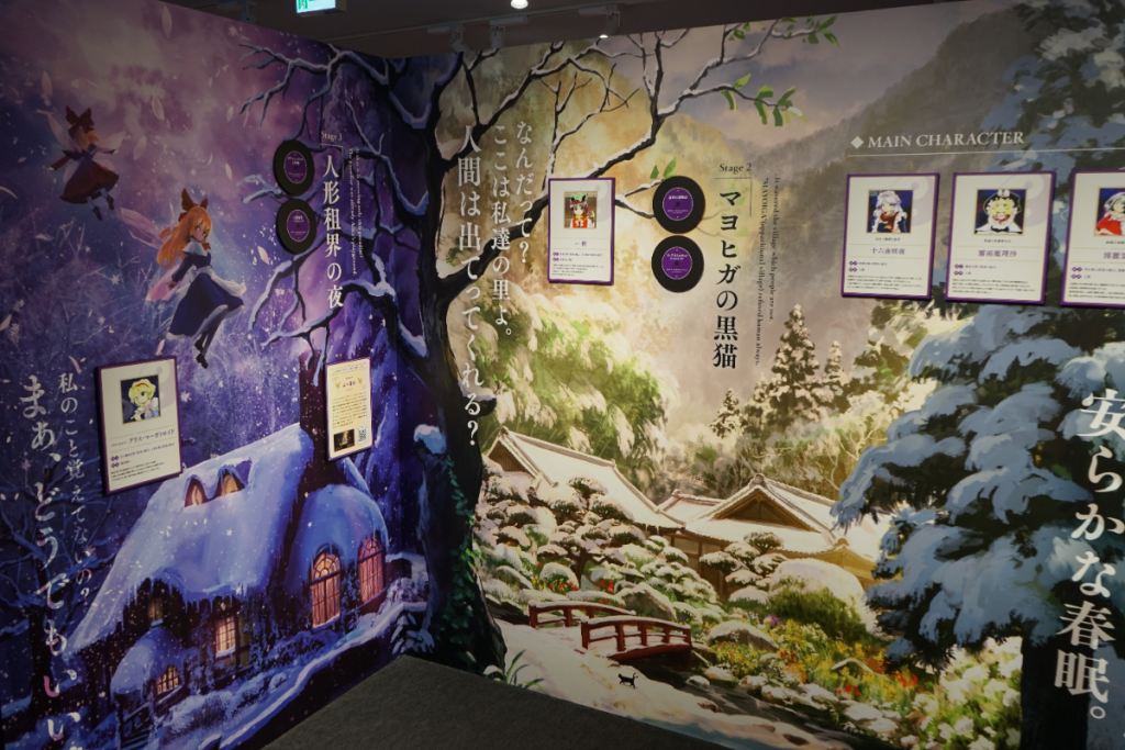 鳥居の先には、妖々夢の美麗な風景が壁一面に描かれており、壁沿いには妖々夢の各キャラクター解説などが展開されています。