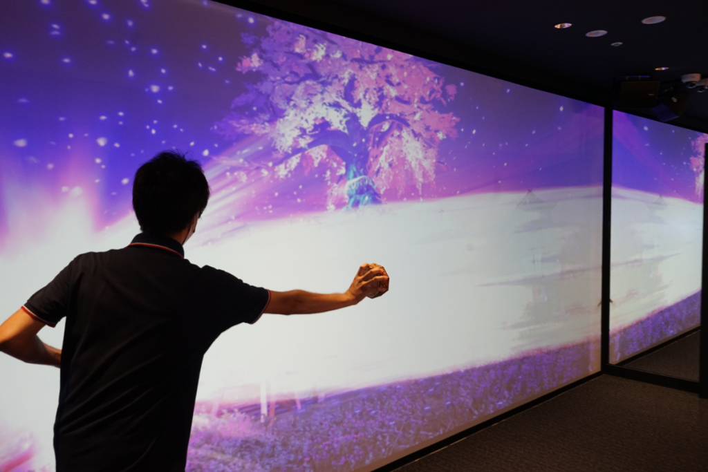 さらに進んでいくと、西行妖が咲き誇る巨大なスクリーンが広がります。続くフロアは体験型プロジェクションマッピング『幻想郷システム』の体験コーナーとなります。