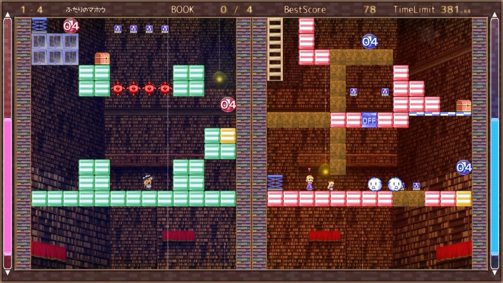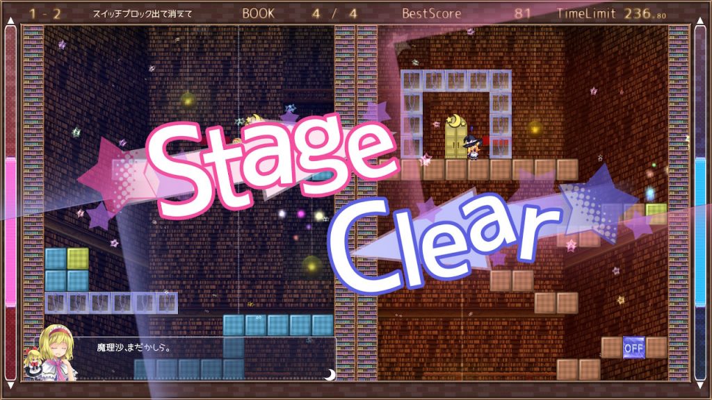このゲームは魔理沙とアリスを使い分けながら、簡単な操作とひらめきで謎を解いていく、2D謎解きアクションゲームになります!