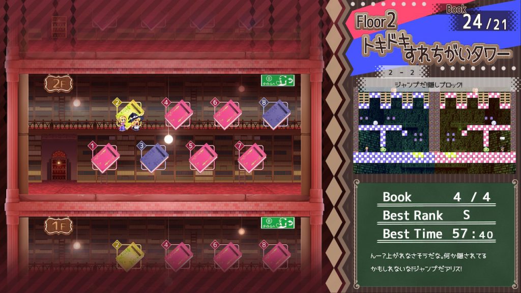 より早く、ステージを駆け抜けて本を回収してSランクを取ると、クリアステージが金色で表示されます。