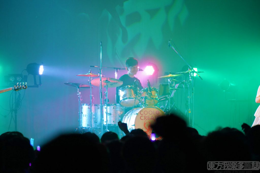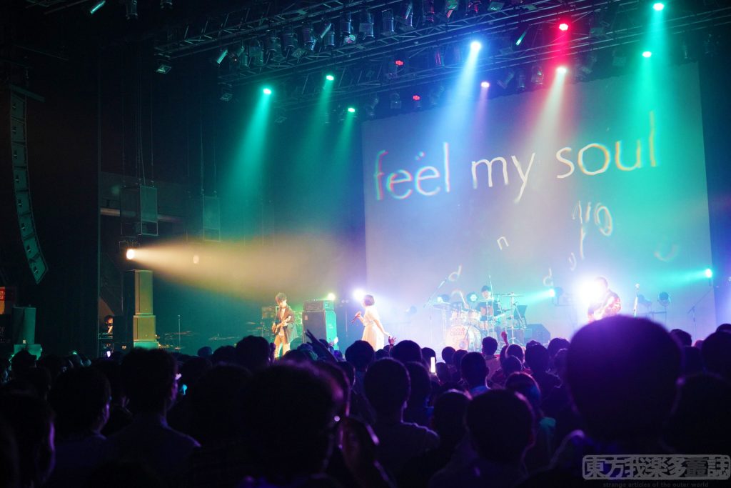 「Your beats my god!」から始まるパートで、フロアは一斉にジャンプ。ペンライトの振りも揃っていて、オープニングアクトのテンションとは思えない。そんな観客たちを見ながら、バンドメンバーたちが笑顔で演奏している姿に、感動を覚えた。cheluceさんが『信じているの』と歌い上げたシーンは、これまでもこれからも東方がつなぎ、つながれることを願っているのではないかと感じさせた。