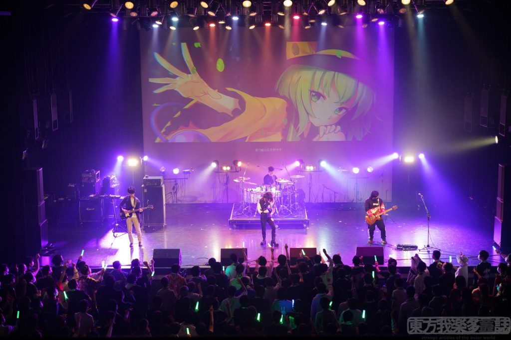 開始前のMC「つなぐ、つながる、東方」は、うた祭で恒例のコール・アンド・レスポンスなのだそうだ。この東方ライブの聖地で、私もこの掛け声に加われてうれしかった。そして、フロアの「東方ーー!!」という全力の叫びは、間違いなくこれからのステージへの期待に満ち溢れていた。