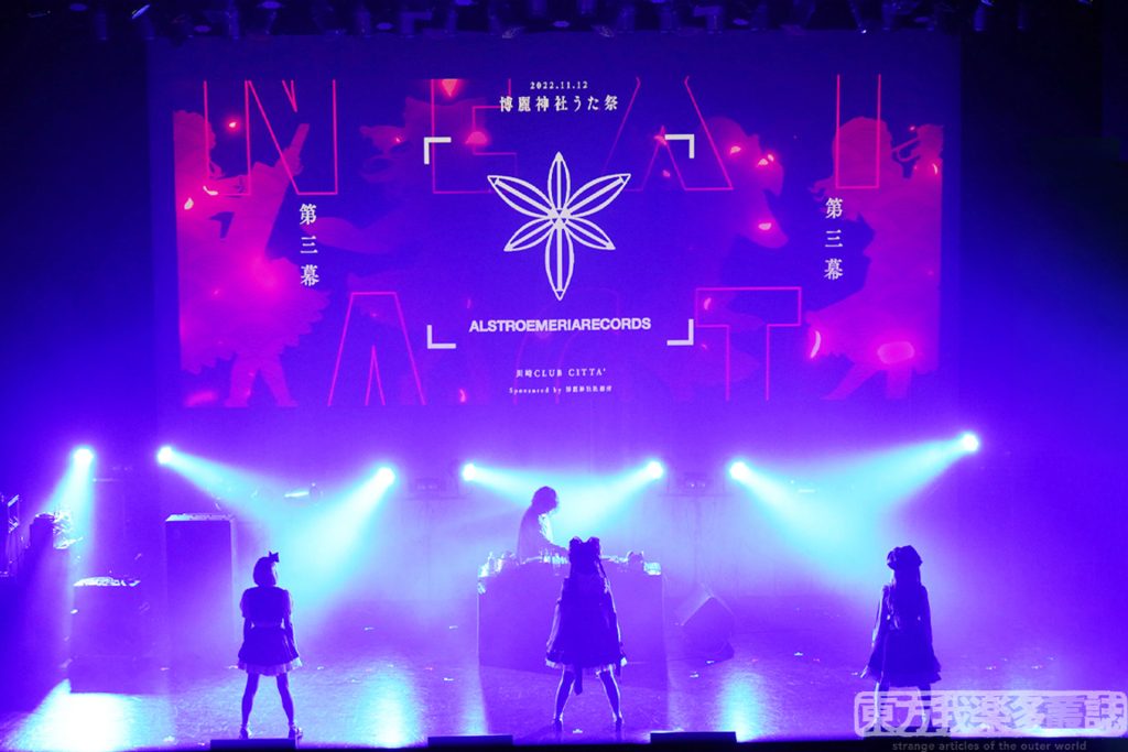 トップバッターであるイノライの時から思っていたのだが、アタック映像に使われている「平安のエイリアン」アレンジがゴキゲンすぎて最高だ。正体不明の怪しいメロディラインに幻想郷一治安の悪いガバキックが重なりライブ直前の高揚感を刺激する。