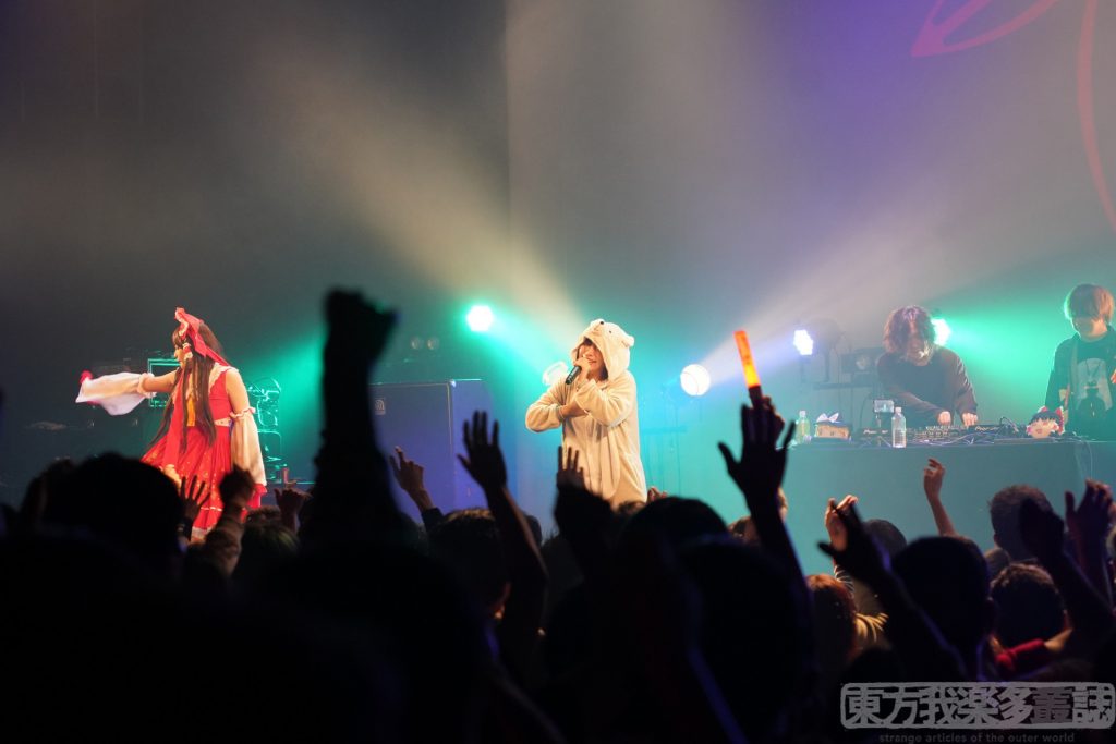 神々しさと共に『Reassemblage』が始まると、霊夢は「脳みそ揺らせーー!!」と会場を焚きつけた。そんな挑発的な博麗の巫女に負けじと、フロア中が頭を、腕を、ちぎれるまで揺らした。