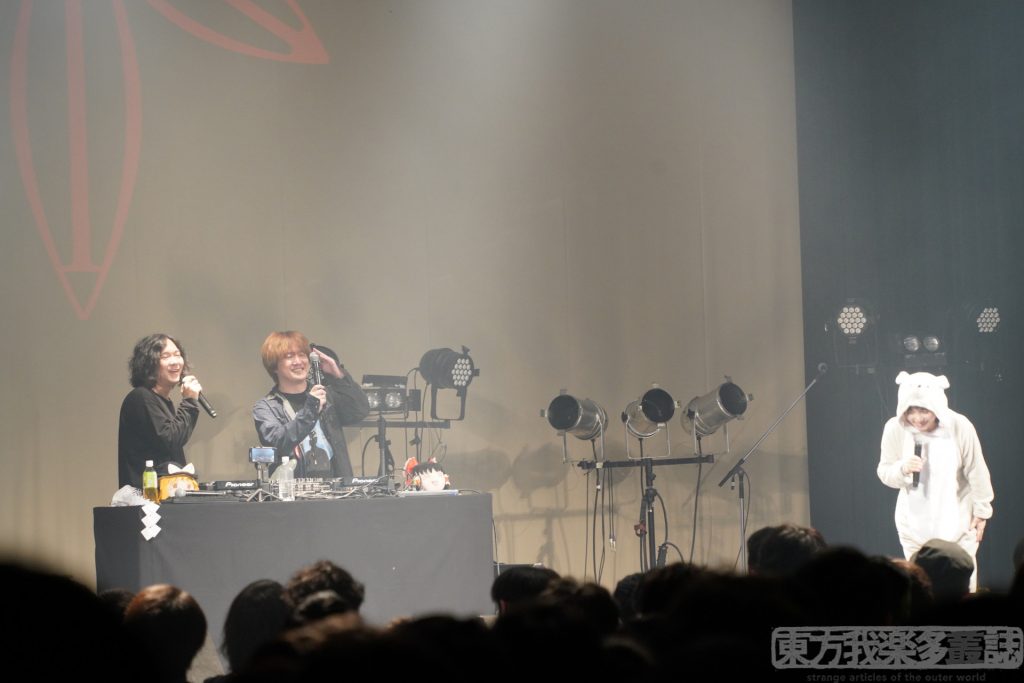 なんなら、mikiccoも”何か”を着ている。なんだあれ? グレーのタオル地で、所謂着ぐるみパジャマみたいな……後のMCで発覚するが、どうやら雑なナズーリン、雑ーリンの衣装らしい。雑ーリン? やっぱり幻覚を見ているに違いない。