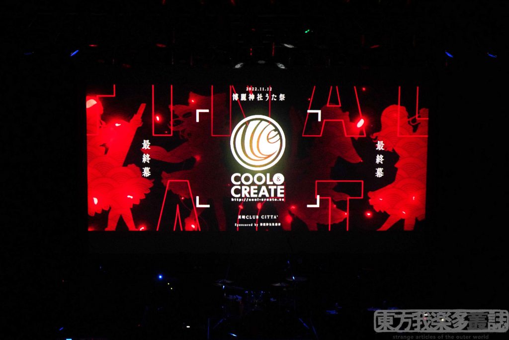 そして、十年以上の時を経てもステージに立ち続けているCOOL&CREATE。なぜ、どうしてかって? 彼らはずっと東方が好きで好きで、たまらなかったからです。ずっとずっとライブやアレンジを続けてきたからです。もはや生ける伝説かもしれません。でも確実なのは、伝説という記憶のなかだけの存在じゃないということ。そんな彼らの現在、今のCOOL&CREATEが、この次の展開から感じ取れました。
