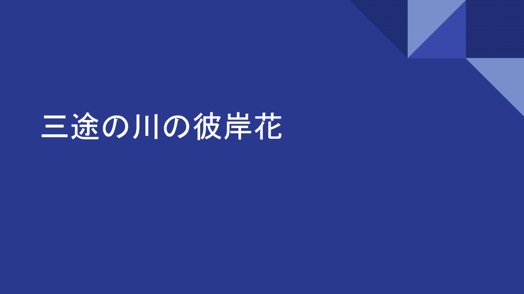 BGMは「彼岸帰航 〜 Riverside View」。ヒガンルトゥールです。彼岸に帰っていくのか、彼岸から帰ってくるのか。いずれにせよ、私の好きな曲です。