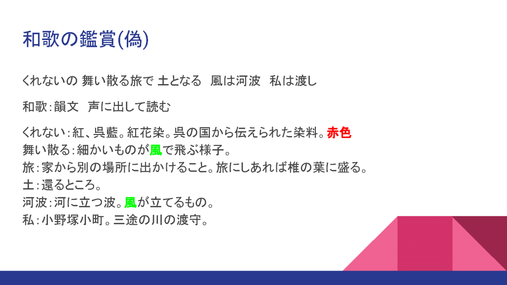 せっかく和歌の話をしたのですから、もう少し続けてみましょう。