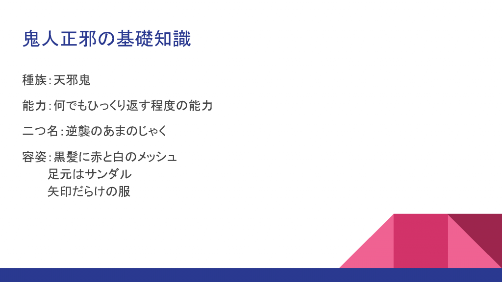 鬼人正邪は天邪鬼です。天邪鬼は鬼ではないらしいですが、当然人でもないわけです。じゃあ一体なんなのかといえば、「あまのじゃく」なんでしょう。二つ名が「逆襲のあまのじゃく」で、ひらがなになっているのもきっとわざとでしょうね。