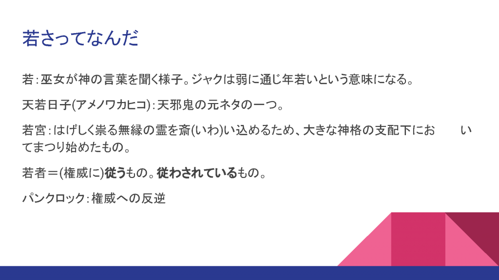 若さってなんだと聞かれたら、振り向かないことだと答えるのが礼儀らしいです。しらんけど。さておき「若」という漢字について考えてみましょう。これは巫女がトランスして神の声を聞いている様子だそうです。見えますか? とにかく「若」には元々年齢に関する意味は無かったようです。中国語では若者のことを青年とか年軽人というらしいですね。