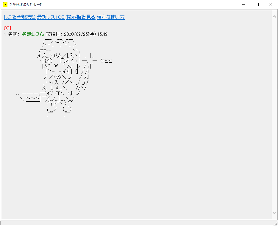 ただ、2ちゃんねるは画像掲示板ではないので、絵を描いて投稿するというのが難しかったので、アスキーアートとして絵を描いたら良いのではないか、という発想に至りました。