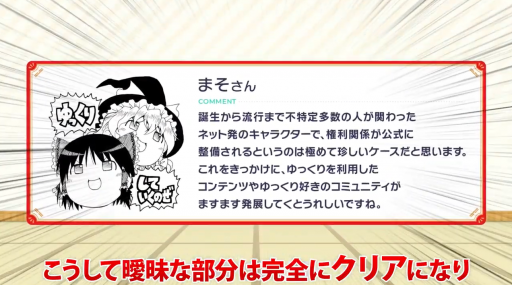 ゆっくりというキャラクターが現在もジャンルを越えてたくさんの人に愛されていること、元々「東方Project」の二次創作から生まれたという基本中の基本から、そもそもどのような経緯で生まれたのか、実はとても複雑な権利関係になっている存在であること、そして……