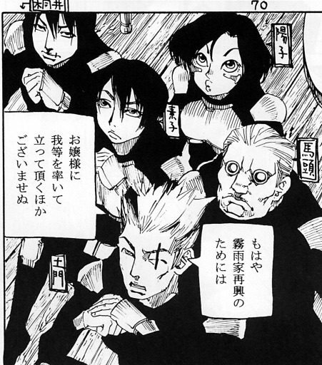 『RAINMAKER』の作中でもその遊びは沢山盛り込まれていて、「攻殻機動隊」や「銃夢」「BLAME!」のキャラの見た目と名前をもじったがキャラが登場したり、モブに有名作品のキャラクターが混じっていたり…そんな元ネタを見つけるのも楽しい作りになっています。