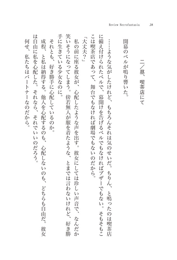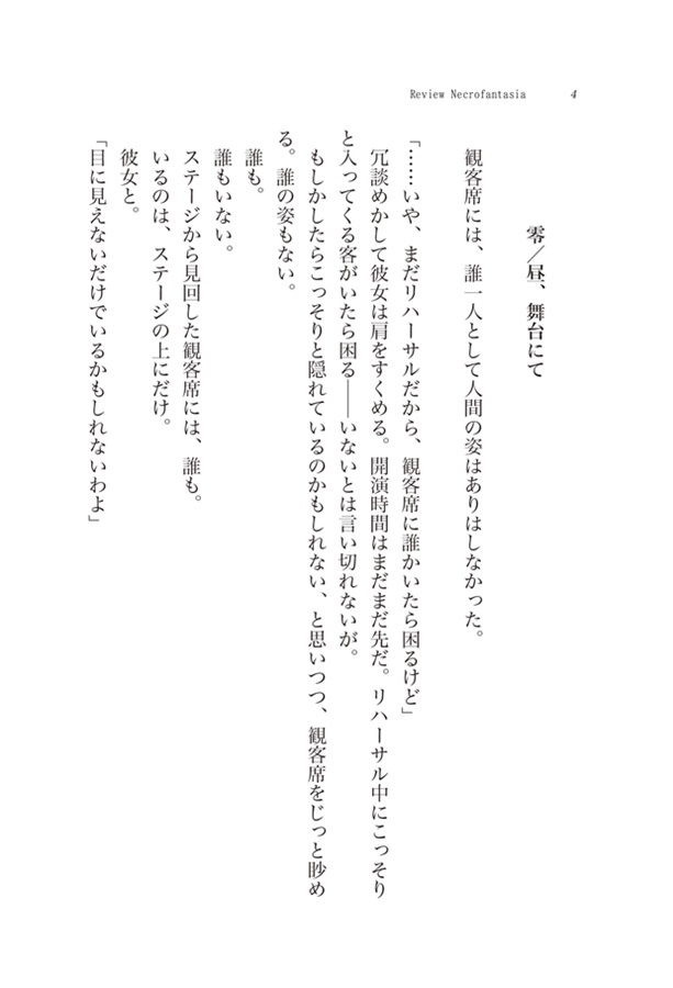 2022年1月、京都で開催された秘封イベント『秘封シンポジウム』にて、朗読劇『幻想のレビュー/Review Necrofantasia』が公演されました。小説としての本作は、朗読劇の舞台裏で起こっていたとされる出来事が記されたストーリーとなっています。