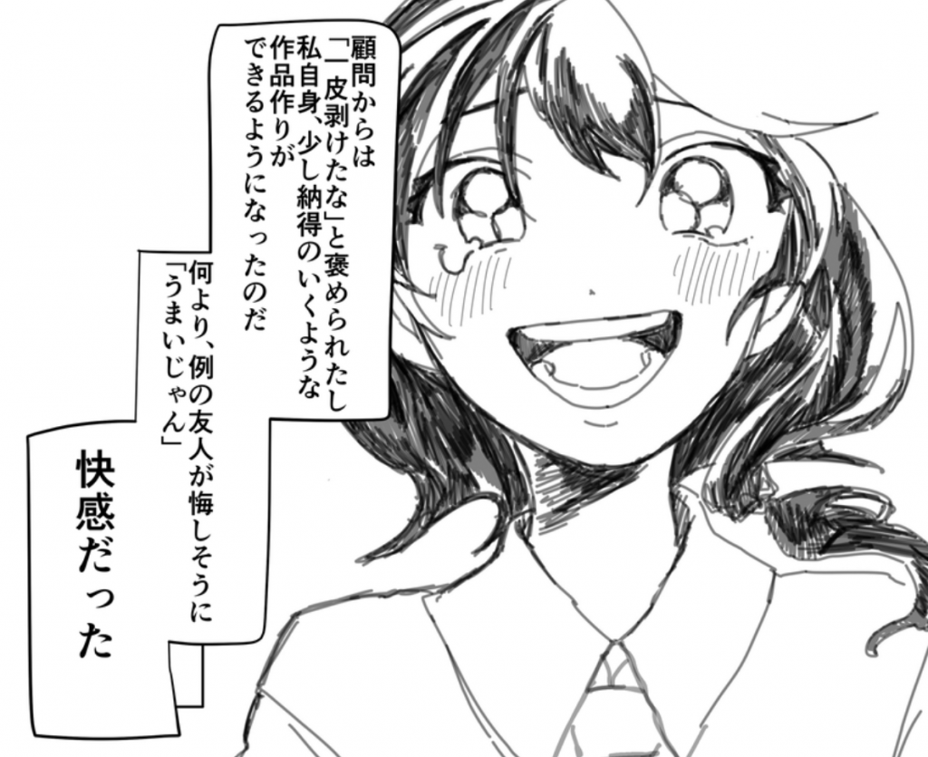 この作品において、主人公である宇佐見蓮子は、高校の美術部に所属しています。コンクールで佳作を取る程度の力はありますが、一番にはなれない。その悔しさを薄笑いで誤魔化しては虚しさを感じつつ、自尊心を守るために自虐したり、自分のアカウントを教えてくれない神絵師のクラスメイトに嫉妬したり、そういった青春の煩悶に身をよじらせる日常を送っている少女です。