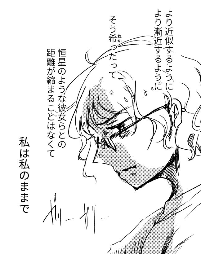 もちろん、原作の宇佐見蓮子に、美術部であったとか、クラス演劇を傍観していただとか、そういった設定はありません。けれども「独白」では、そんな宇佐見蓮子の自尊と不遜、自虐と諧謔、青臭くも峻烈な感情が、まだ見ぬ未知を追い掛けようとする原作の宇佐見蓮子のキャラクターを裏打ちするように馴染んでいることに驚かされます。