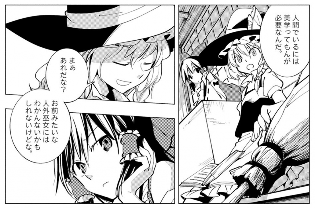 収録されている全ての作品を読み終わった今、改めてカバーを見ると、そこには全てが存在している。電子版でどこまで再現されているかはわからないが、物理版だと一目瞭然だ。とくに、霊夢と魔理沙の関係性についての表現が素晴らしい。