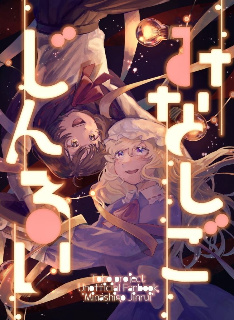 『みなしごじんるい』は、秘封倶楽部と短歌とイラストの本である。右頁に大きくフルカラーのイラストが、左頁にはイラストに関連した短歌が掲載されている。短歌とは端的に言えば、五、七、五、七、七のリズムと季語によって彩られる詩の世界だ。