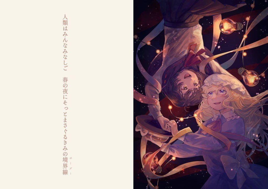 豆電球という小さな光によって照らされる蓮子とメリーの表紙は、詩の在り方であり、色の在り方であり、関係性の在り方そのものだ。小さな光は、宇宙の全てを照らしはしない。世界の秘密を全て明らかにしたりはしない。照らし出され、見えるものはほんの少しだけだ。