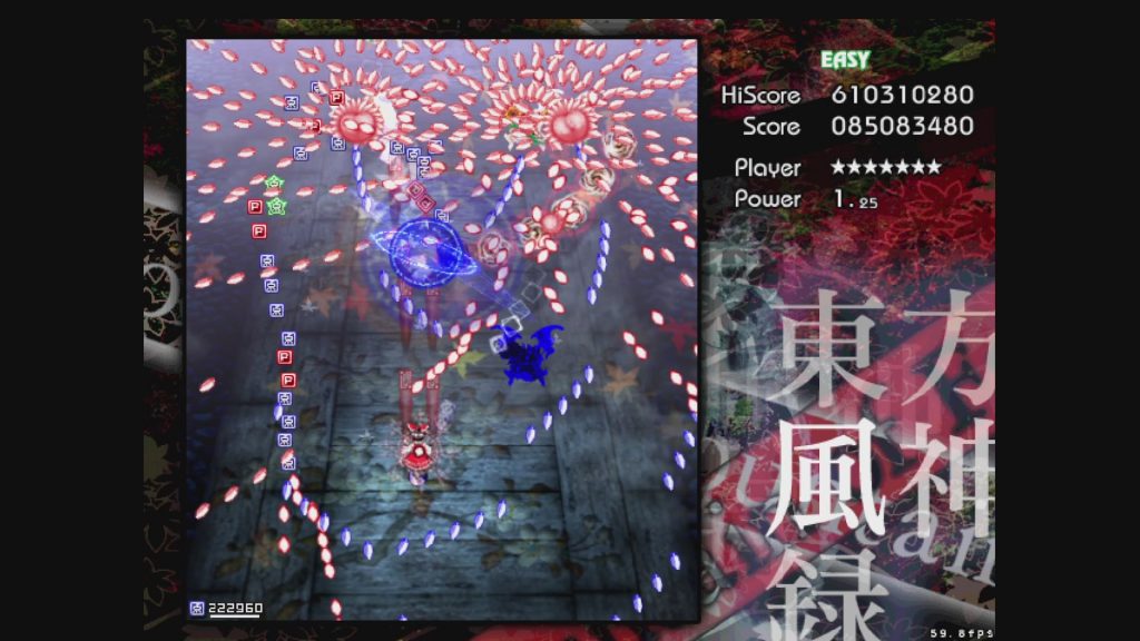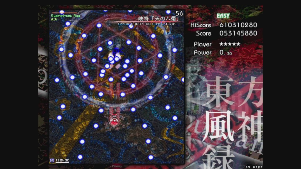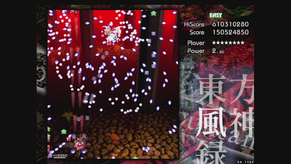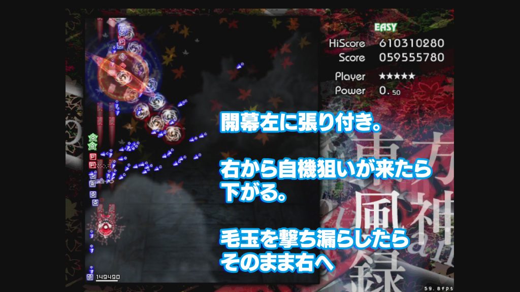 来ました。最後にして最大の難関。風神録のすべてです。ここまでに残機を2つ以上もって到達することが、風神録Easyの要になります。