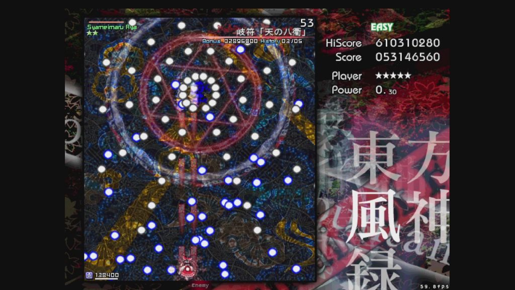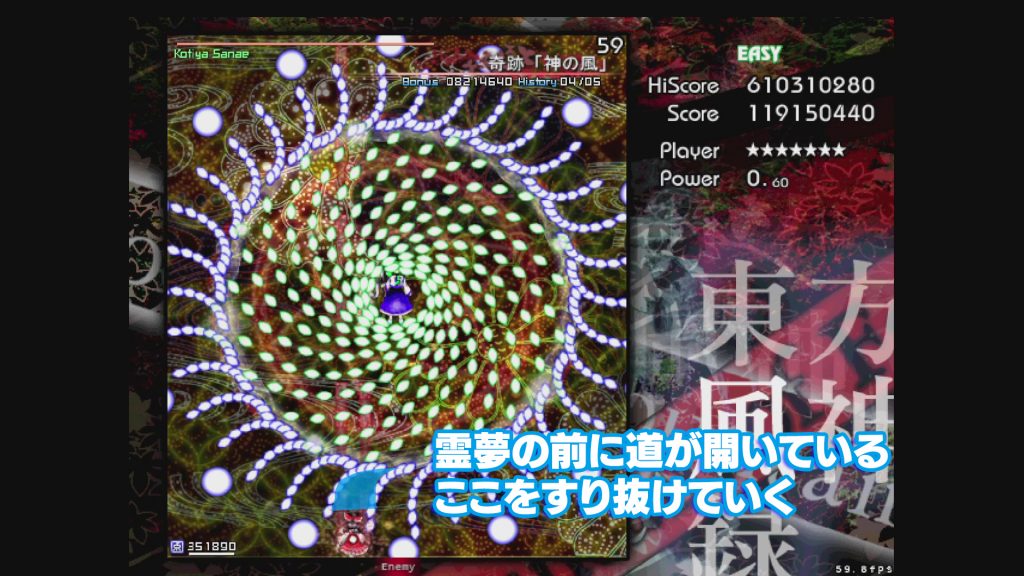 「東方風神録」Easy後半戦、早速攻略していきましょう。ここからまた難易度がひとつあがりますが、諦めずに何度も挑戦してみるのが大事です。ポイントは変わらず