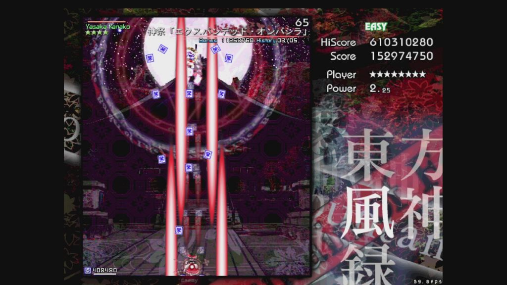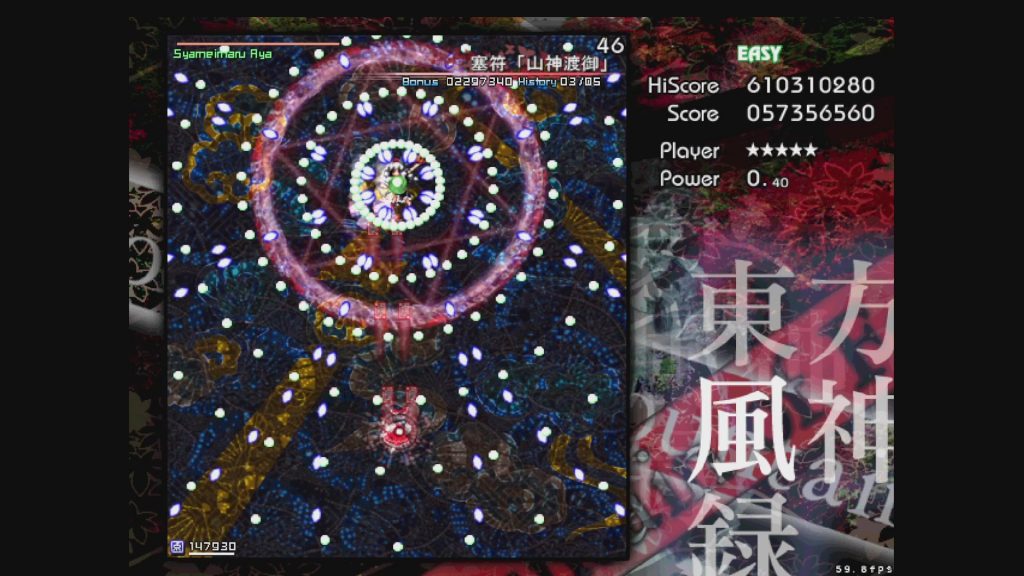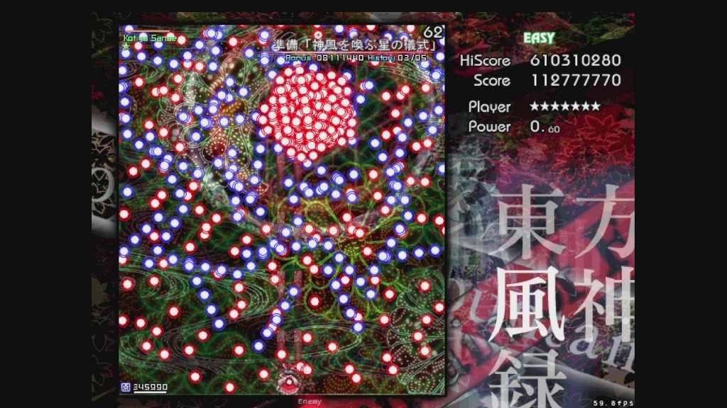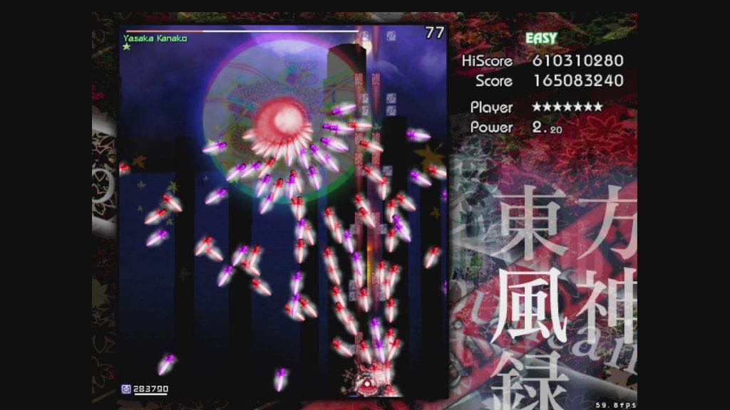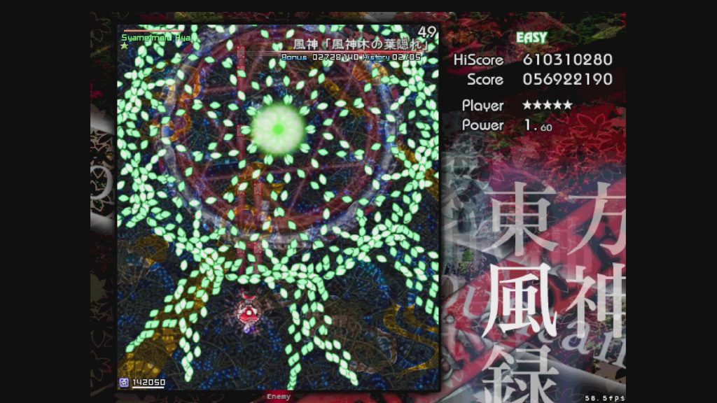 (「マウンテン・オブ・フェイス」に関しては、Easyは弾速があまりに遅すぎるため、Waveの重なりがかなり早い段階で発生しやすく、Normalよりも難しくなってしまう現象が起きています。神奈子さま?????なんで????????)