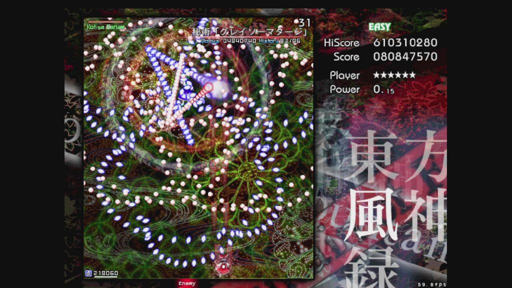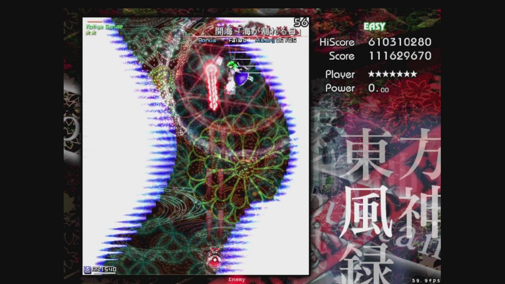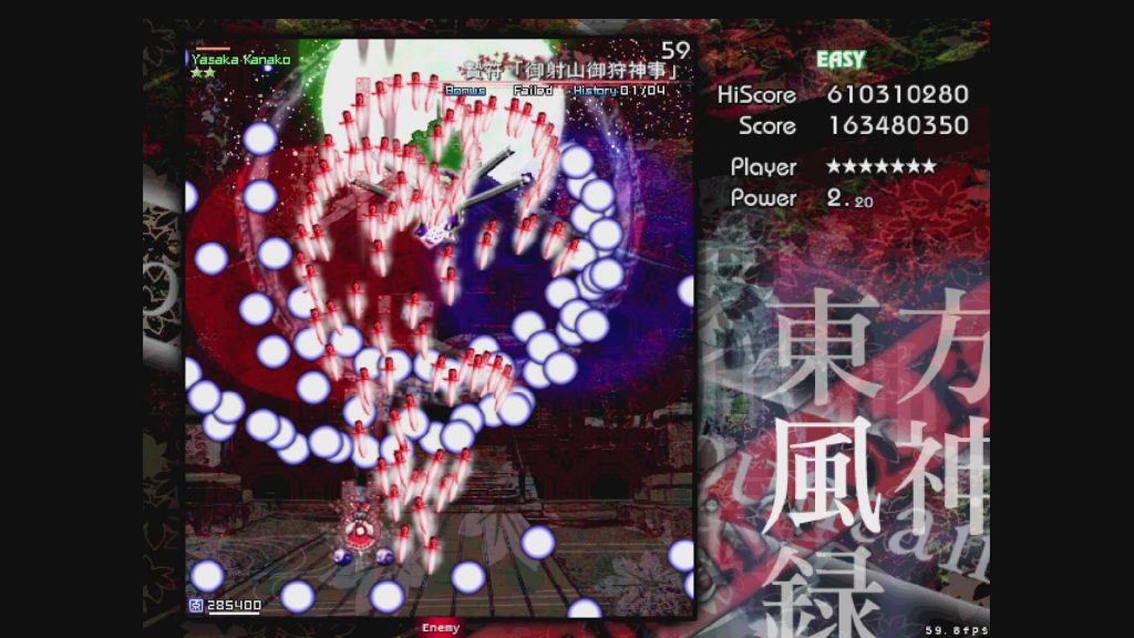これはねえ、無理ですね。2ボムです。こんなんEasyの腕前で取得狙うスペルカードじゃないんですけど神奈子様ぁ……。