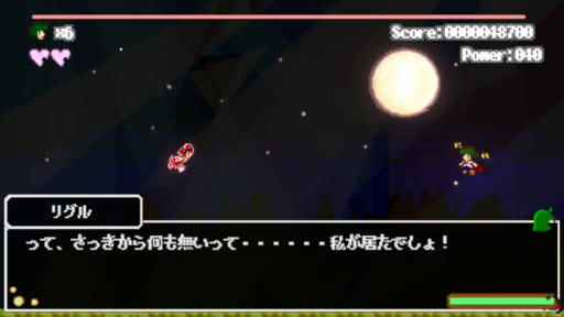 東方永夜抄の影の主人公はリグルだった! ──と高らかに宣言するかのような目一杯の愛に満ち溢れたこの作品、リグル好きの人にはもちろん、リグルをまだあまり知らないという人にも是非プレイして頂きたいです。きっと「リグル・ナイトバグ」というキャラクターが持つ、新たな魅力を知るきっかけになるでしょうから……!