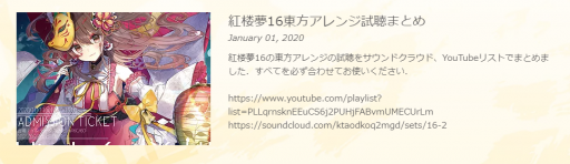 ※東方紅楼夢(第16回)が初出の作品も、例大祭の新譜リストに含めています。