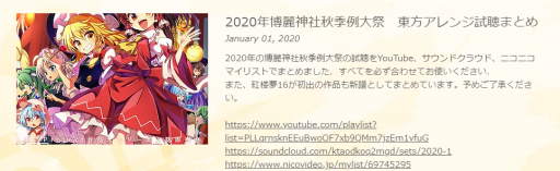 東方音楽歴では大規模な即売会のたびに新作の試聴をまとめています。