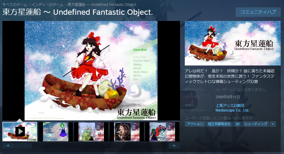 PCゲームダウンロードプラットフォームの最大手「Steam」にて、「東方風神録 ~ Mountain of Faith.」「東方地霊殿 ~ Subterranean Animism.」「東方星蓮船 ~ Undefined Fantastic Object.」の3タイトルのストアページが公開され、6月6日にリリースされることが明らかになりました。
