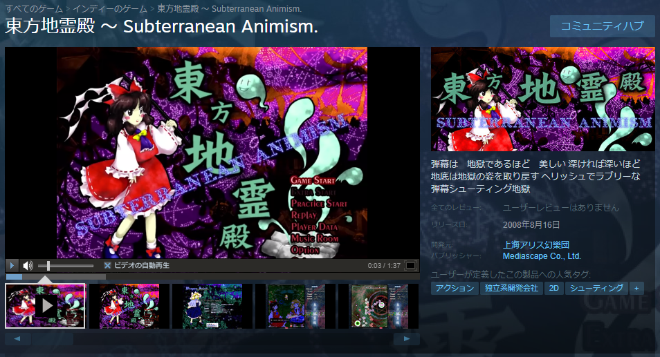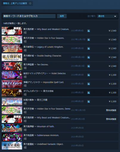 これまで、Steamでは「ダブルスポイラー ~ 東方文花帖」から「東方鬼形獣 ~ Wily Beast and Weakest Creature.」までのタイトルが配信されており、いわゆる「整数ナンバリング」と呼ばれるタイトルは「東方神霊廟 ~ Ten Desires.」より以前のタイトルは配信されていませんでした。